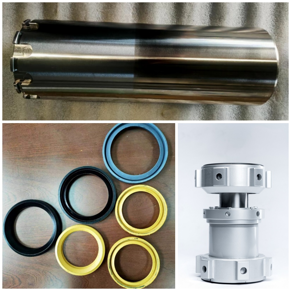 超級沖管總成采用新型浮動預壓式結構,浮動式上部與水龍頭連接,可解決端面偏差問題。下部與頂驅主軸連接,采用預壓緊新型盤根盒結合新材料盤根密封,沖管表面采用超耐磨涂層技術,極大提高了整體使用壽命。